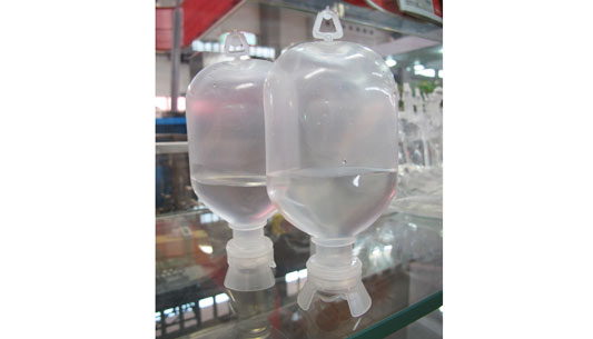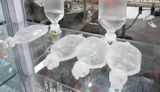 與傳統的二步法制作輸液瓶相比,SPZC10型一步法吹瓶機具有污染小,能耗小等顯著特點。它能直接將PP粒子制作成輸液瓶,其中間過程是先將PP塑料粒子加熱制作成管胚,不等管胚冷卻就再次加熱,然后吹塑成輸液瓶,中間環節少,降低了輸液瓶污染的可能性,而且大大降低了能耗。SPZC10型一步法吹瓶機的污染小和低能耗是未來吹制輸液瓶的發展趨勢。