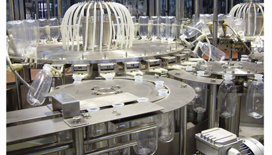 本機是在制藥行業的大輸液塑料瓶的的生產線中,將洗瓶、灌裝、封口等工序集中在一體的專用生產設備。